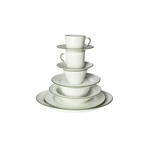 Ovanåker Green is a line made in porcelain. The glaze has spots and hand painted edges. Dishwasher safe and micro safe.